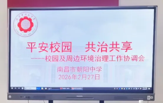 安全无小事,责任重于山。为深入贯彻落实《中小学、幼儿园周边环境综合治理工作》相关要求,扎实推进校园安全精细化管理与常态化教育,筑牢师生安全屏障。南昌市朝阳中学2026年2月27日下午,联合辖区内朝农派出所,市交警直属二大队及南昌市日安保安公司,在校四楼会议室召开“平安校园 共治共享”为主题的校园及周边环境治理协调会议。