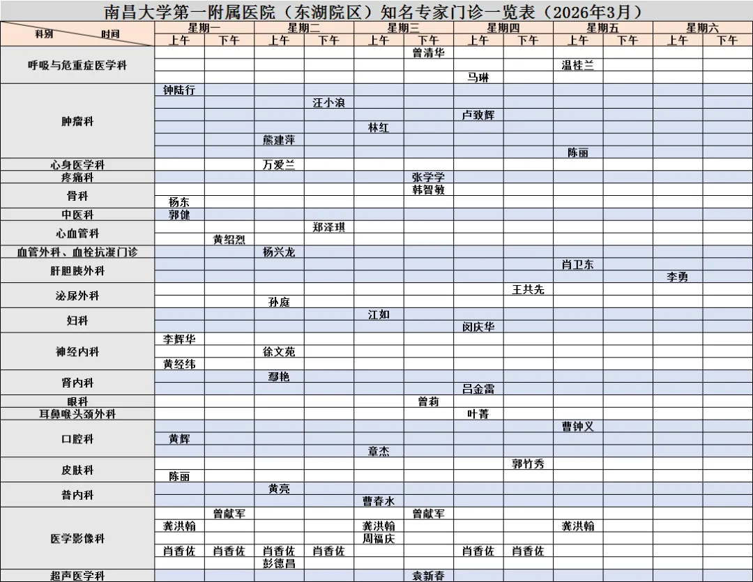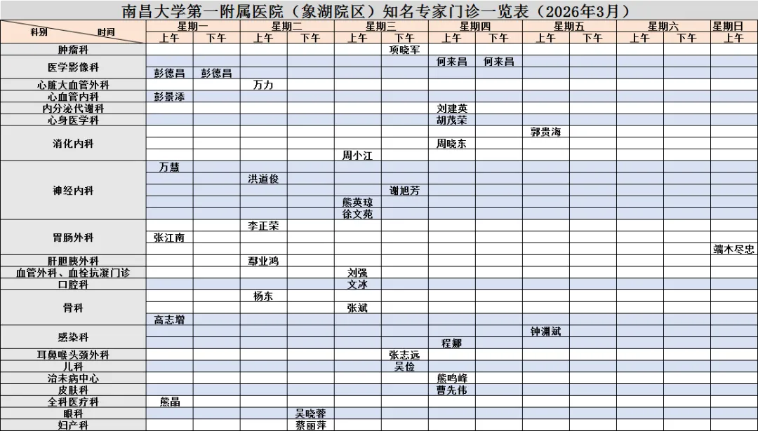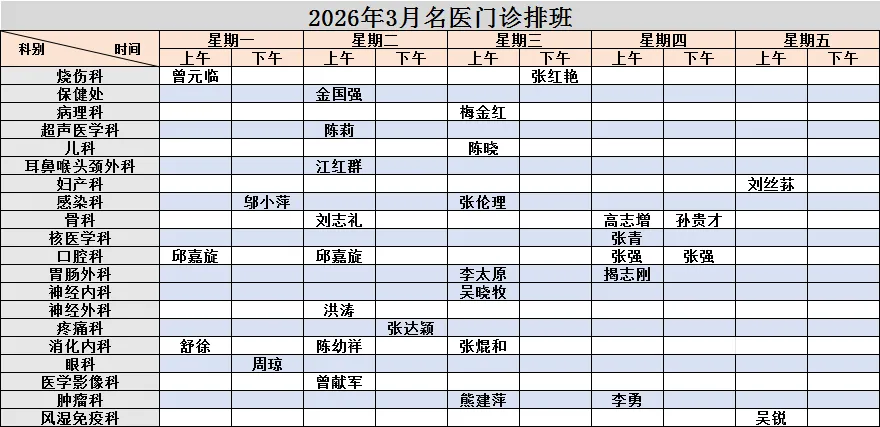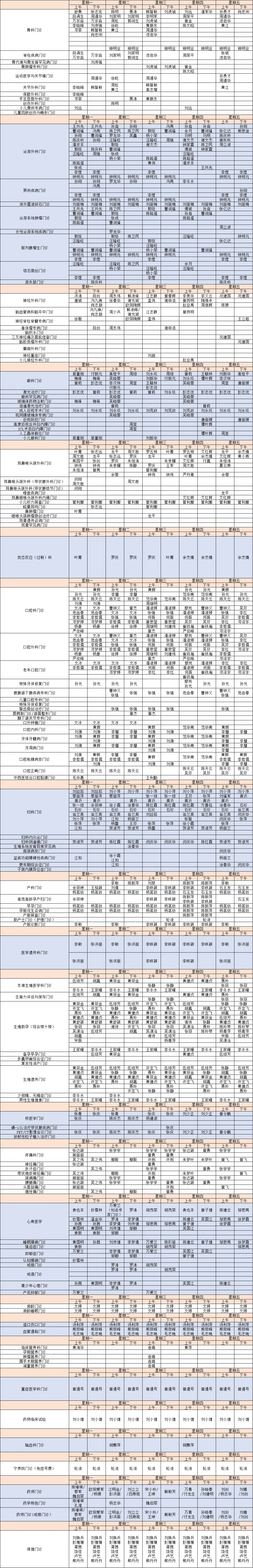 注:以上排班以当日公布为准,实时查看请回到公众号首页选择“就医服务”→“当天挂号”