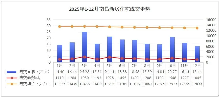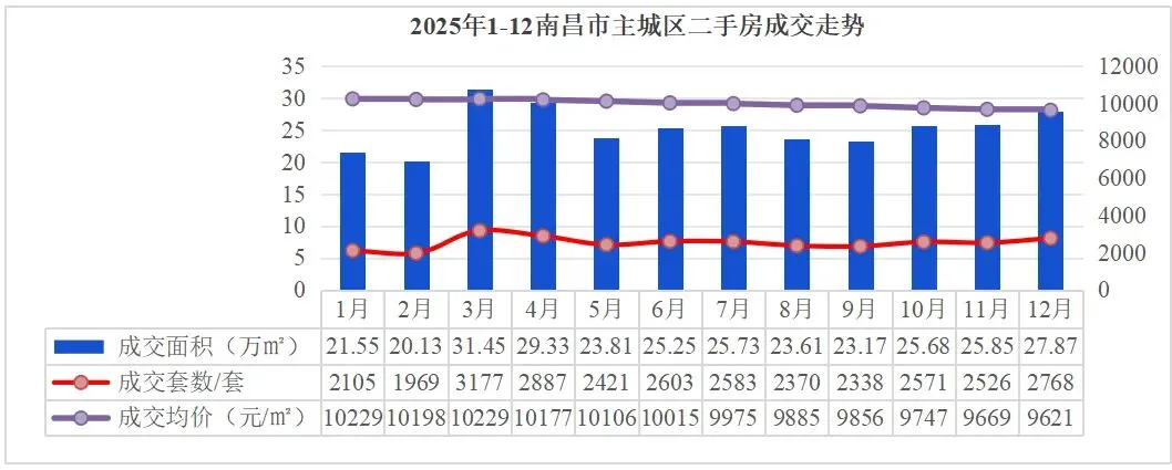比如象湖联发悦玺台、聚仁滨江等,价格低至“4字头”,今年还多次推出特价产品。96个在售新盘中,包含了近10几个新规项目(还有4代宅),这些新规盘的成交均价在所在片区,均属于靠前队列。比较典型的,南昌市高区房价TOP10中,新规盘几乎独占。2025年,南昌市城区住宅新房整体成交均价13038元/平。从月度走势看,新房均价自2025年初就以进入稳定运行阶段,全市主城基本围绕1.2万/平以上浮动。二手房方面,2025年整体成交均价9976元/平,全年整体呈下跌趋势,同比下跌7.6%,12月成交均价9621/平。主要是受新规产品挤压、区位配套以及购房者预期等多重因素影响,这也导致新房、二手房价差进一步拉大。