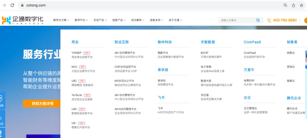 透过官方网站,可以感受到, 用友是部分业务