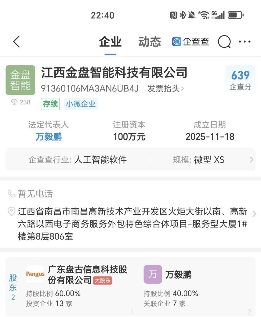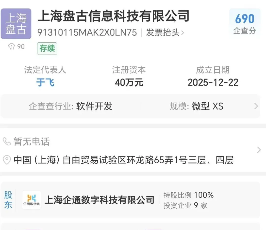 上海企通与东莞盘古,联营公司