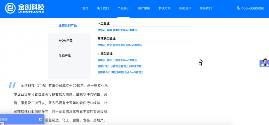 透过官方网站,可以感受到, 金蝶是核心业务