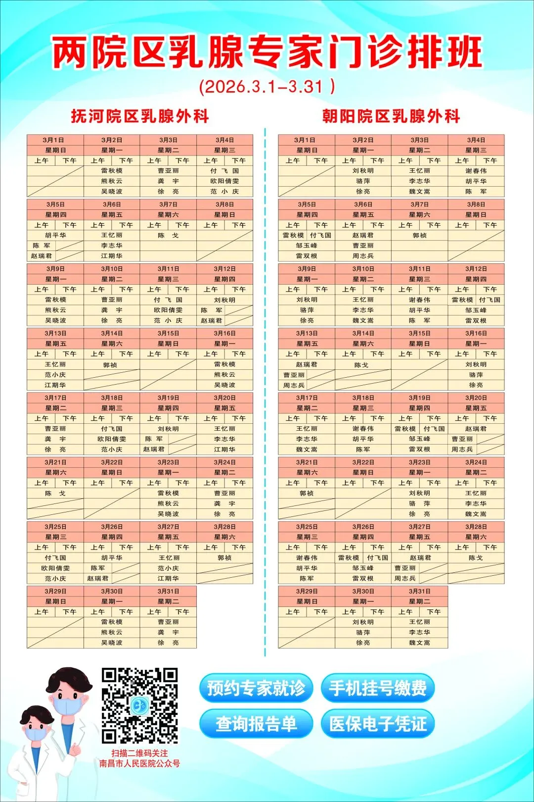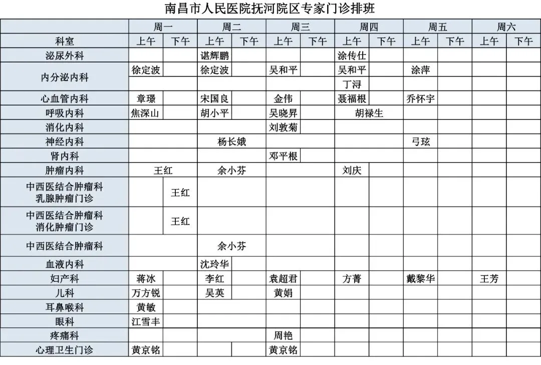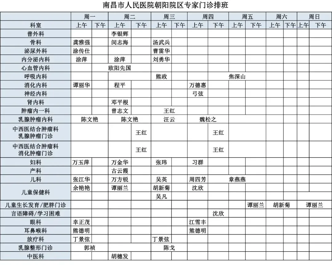 【出诊安排】南昌市人民医院2026年3月专家坐诊安排