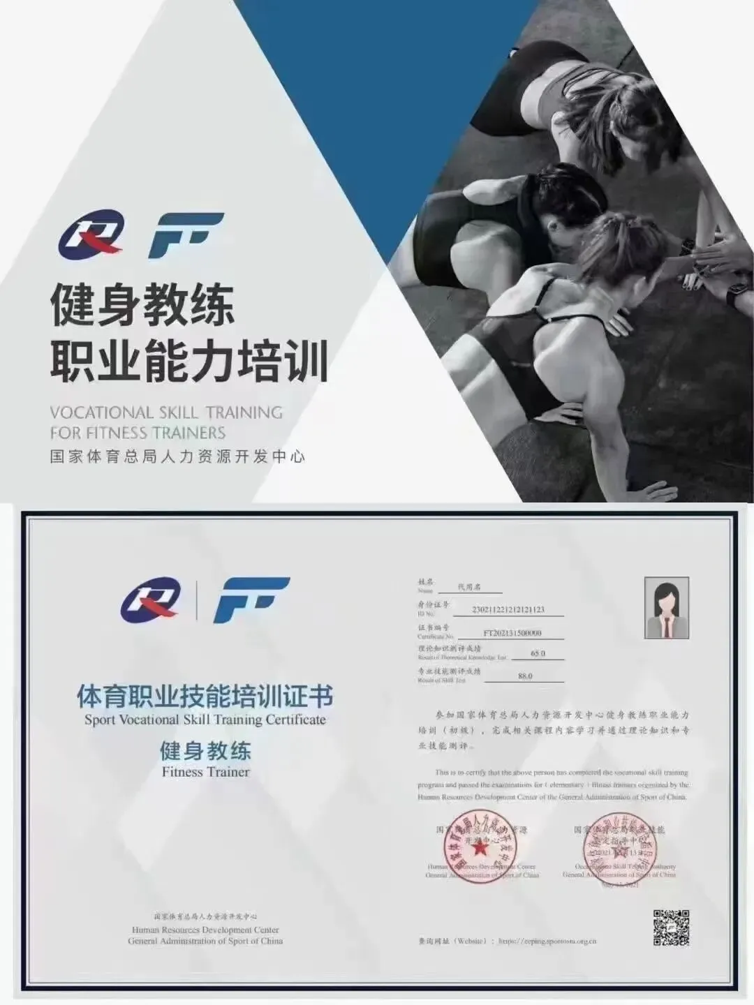 两项成绩合格者,由人力中心颁发健身教练职业能力培训证书,证书可在“国家体育总局人力资源开发中心职业能力培训测评管理平台”