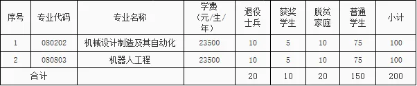 注:联合培养专业:机械设计制造及其自动化和机器人工程专业,联合培养院校:九江科技职业大学,培养地点:江西省共青城市。