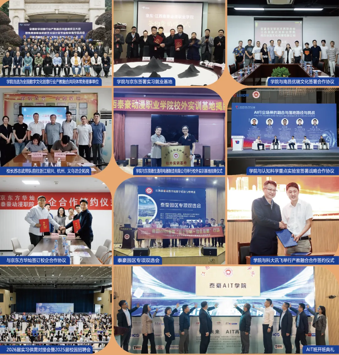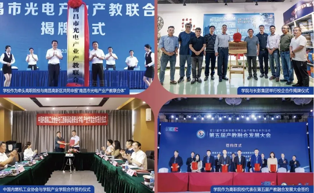 学院始终坚持“产教融合、校企合作”的发展理念,致力于深化“一技多能”人才培养模式的探索与实践,以“产业链现代化“1269”行动计划”为指导,坚持“以教促产、以产促教”的原则,积极组建产业学院、市域产教联合体、产教融合共同体,并推动产教融合项目的落地实施。学院先后与华为公司、完美世界教育、泰豪应急装备集团、美翻科技有限公司、江西华广电影视科技有限公司、中国联通等企业组建华为ICT产业学院、数字文创产业学院、智能制造产业学院、直播电商产业学院、华广数智影视制作产业学院、虚拟现实产业学院等产业学院;并与南昌高新技术产业开发区、南昌华勤电子科技有限公司、江西科技师范大学等单位共同牵头成立了南昌市光电产业产教联合体;作为主要参与单位,联合中国电信、华为公司、江西财经大学等单位,共同成立元宇宙行业、全国数字文化创意行业、网络软件安全行业、全国融媒体行业等行业产教融合共同体。