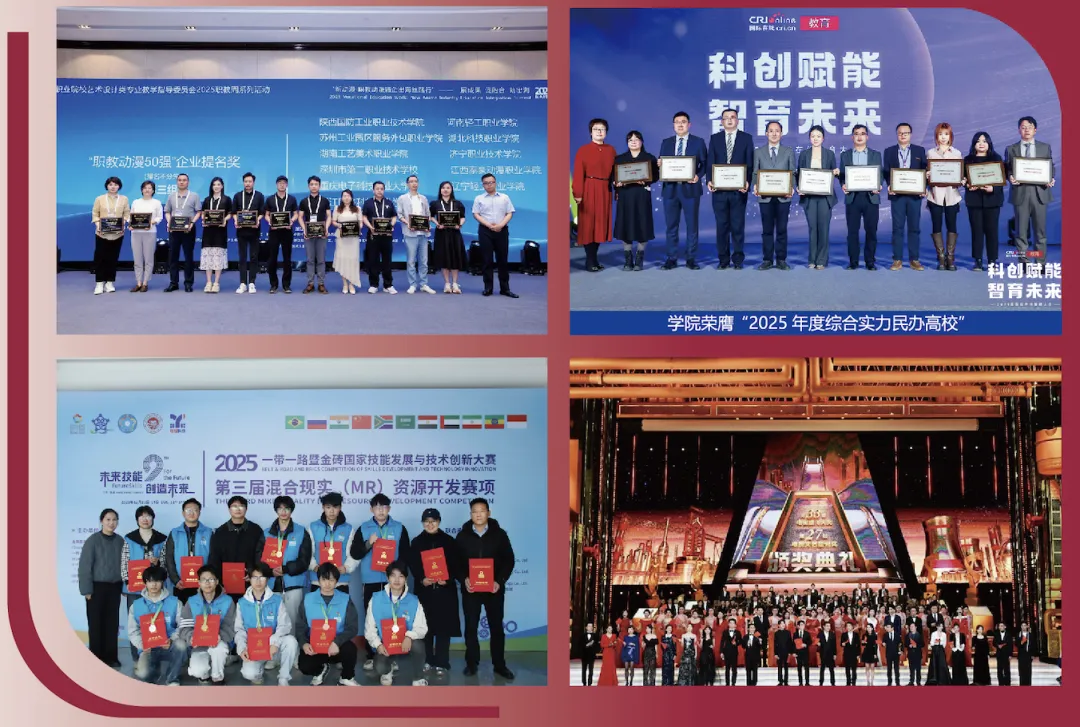 经过历次发展升级,先后获批为国家文化产业示范基地、国家级众创空间、教育部现代学徒制人才培养单位、江西省人才培养模式创新试验区、江西省平安校园、省级大学科技园、省职业院校技能大赛突出贡献单位等,是江西省最早开始培养VR(虚拟现实)人才和首家招收外国留学生的高职院校。凭借近年来鲜明的办学特色和显著的办学成绩,荣获“办人民满意职业教育——江西职业教育十佳示范学校”,荣膺中央广播电视总台国际在线“2024年度产教融合标杆院系”。