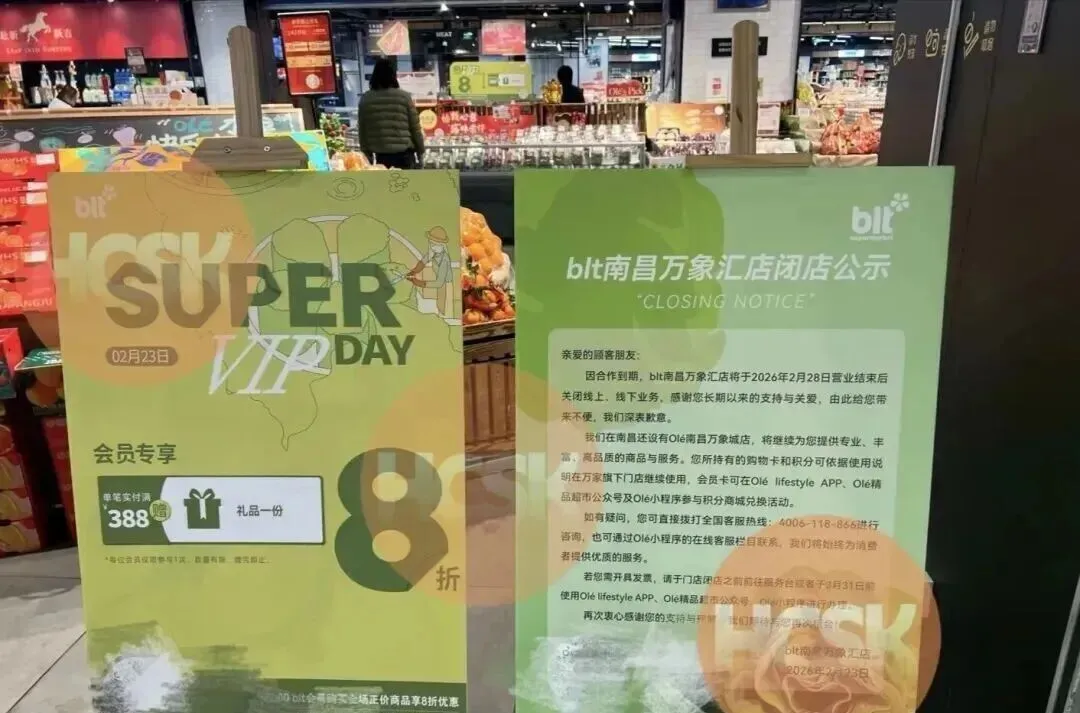 南昌青山湖万象汇BLT精品超市官宣关停,闭店时间是2026年2月28日!