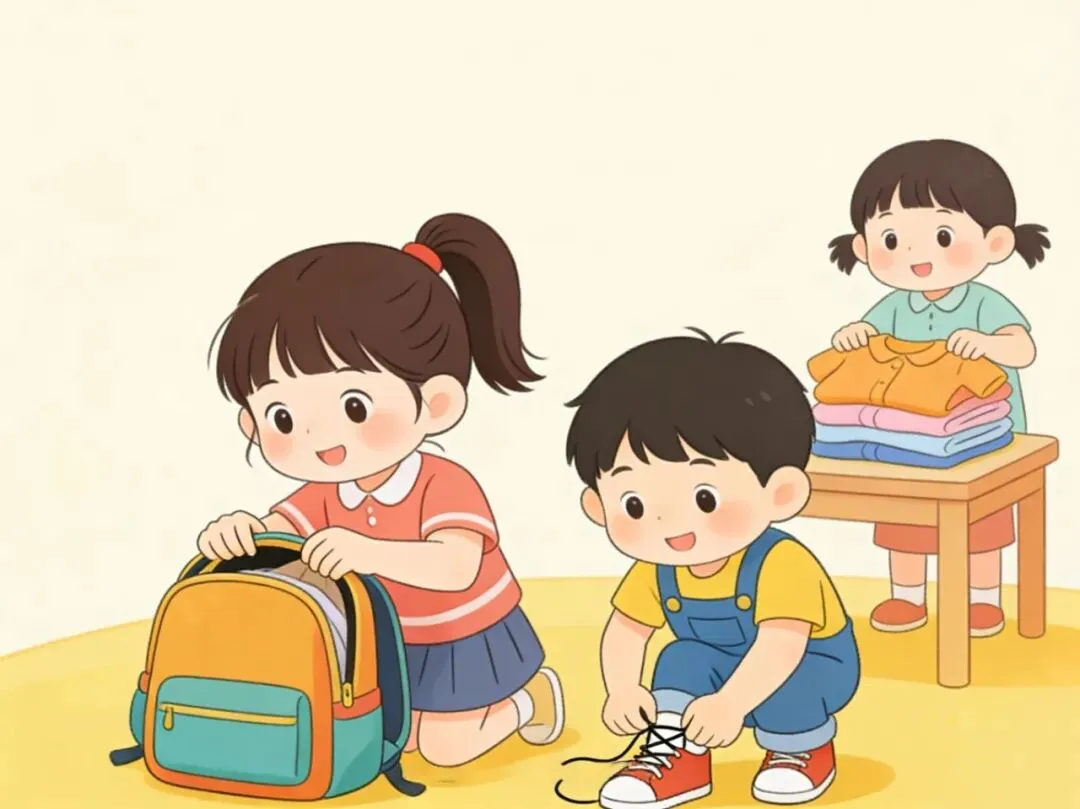 假期里宝贝可能习惯了家长帮忙穿衣、喂饭,开学前可以有意识地让宝贝自己做这些事,比如“自己穿鞋子,开学后可以当小伙伴的小榜样哦”,既锻炼自理能力,也能增强宝贝的自信心。