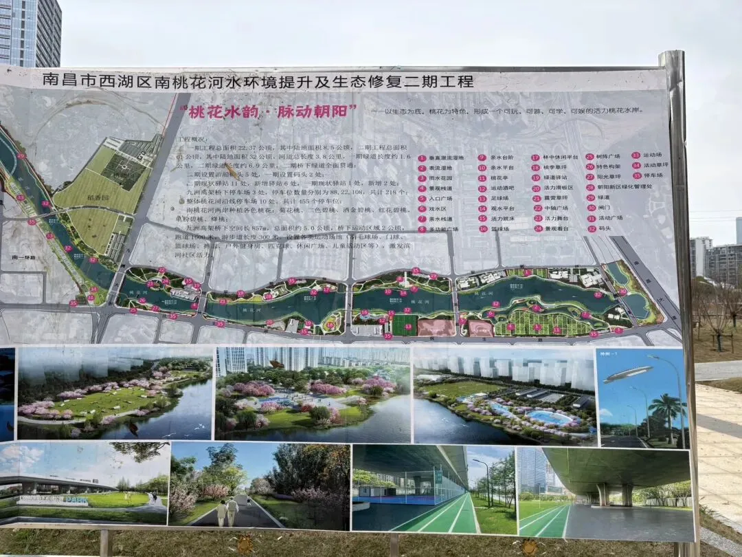 桃花河两岸排布了朝阳多个高端大宅,有号称南昌第一豪宅的新力洲悦,建发首个王府大宅缦云,还有在售的建发最高档项目观云1期,未来还有2期,以及雍锦王府等等,所以,桃花河公园的交付,关乎到沿线居民的幸福指数。桃花河湿地公园分两期建设,一期已在25年初完工,二期定于26年上半年竣工。桃花河湿地公园是集体育、运动、儿童娱乐、田园风光、休闲漫步、商业综合体及地铁为一体的生态公园。整个湿地公园全长约3.8公里。其中一期+二期绿道总长度8.5公里。目前,已建成儿童乐园,地面都是塑胶,还有休闲石凳。在抚生路东侧设计有一大片人工湿地。