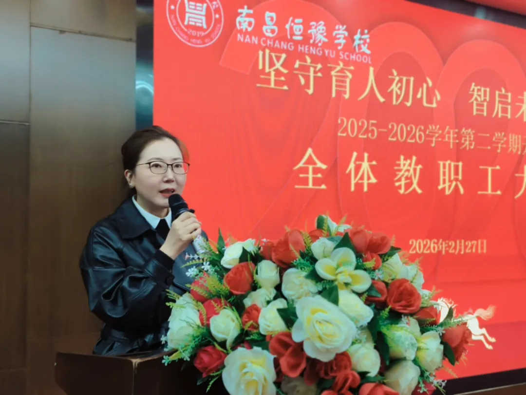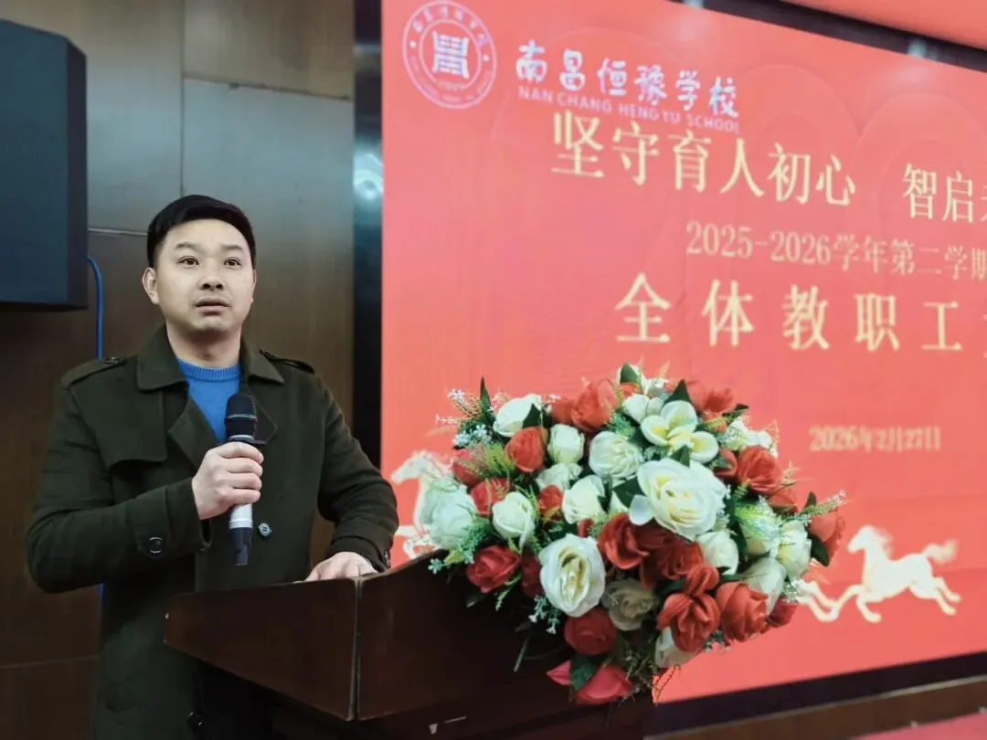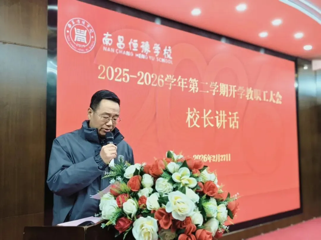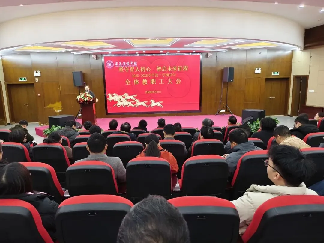 桃红柳绿春光好,读书求学正当时。在充满希望的春天,我们迎来了新的学期。2月27日上午9:00,南昌恒豫学校2025-2026学年下学期开学全校教职工大会在学校合班教室举行,会议以“坚守育人初心 智启未来征程”为主题。盛仁教育集团副总经理童如洁、执行校长何源、小学部校长王胜、校长助理陈江远、工会主席尚晓红、高中部副校长李永田、初中部副校长叶歆及全体教职工参会。会议由校办主任杨生桃主持。