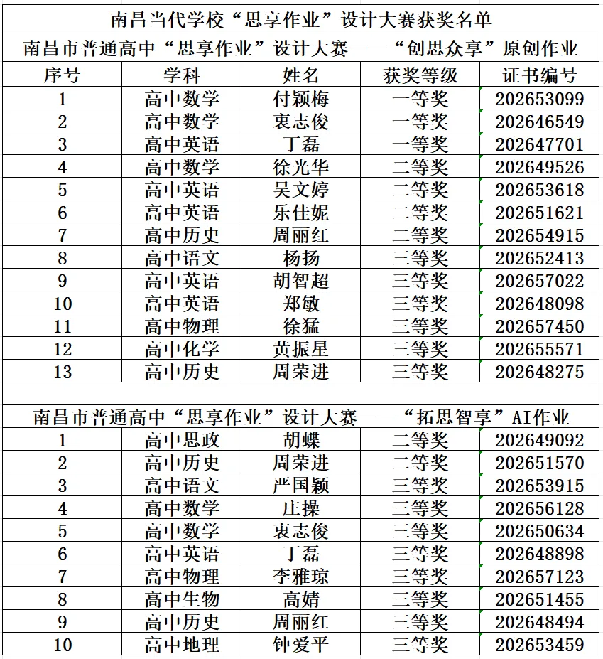 在此,向所有获奖教师致以诚挚的祝贺!期待全体教师再接再厉,共创佳绩!
