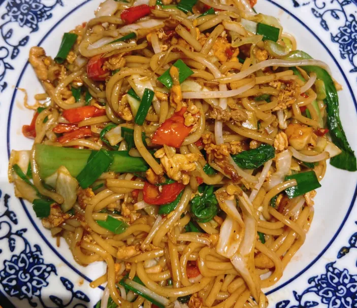 扎粉是宜春人的早晨图腾。必须是土扎粉,颜色微黄,韧劲足。大火爆炒,干辣椒粉裹着每一根粉条,豆芽和肉丝在里面若隐若现。一口下去,外皮焦香,里面软糯,辣味顺着舌尖直冲天灵盖,额角微微冒汗,整个人瞬间就醒透了。