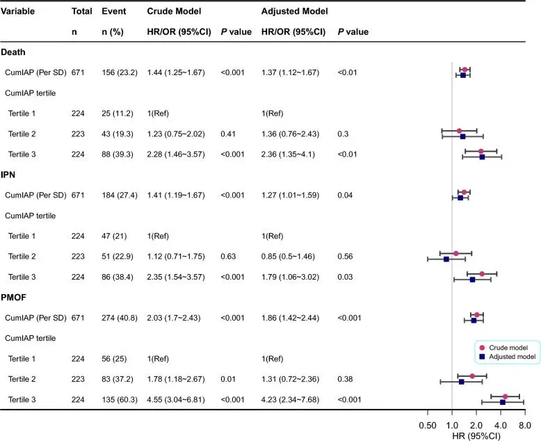 CumIAP与SAP受试者预后不良的关联