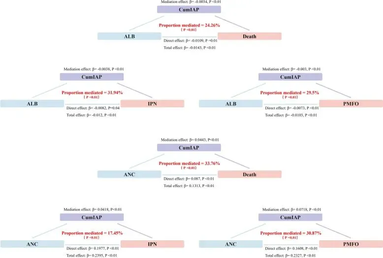 CumIAP对ALB和ANC相关SAP预后不良风险的中介效应分析