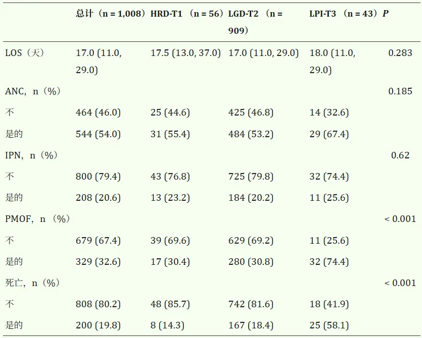 临床结局方面,HRD-T1预后最佳,LPI-T3最差,PMOF和死亡率分别为74.4%和58.1%,LGD-T2为30.8%和18.4%,HRD-T1为30.4%和14.3%(见表4)。Kaplan–Meier分析证实LPI-T3的死亡率显著更高(对数秩P<0.05)(见图。第五季)。MIMIC-IV队列中验证了类似的轨迹模式和结局分布(见图。S6 和表 S8)。进一步回归分析显示,LPI-T3与住院死亡、IPN和PMOF风险显著增加,而HRD-T1和LGD-T2之间无显著差异。LPI-T3死亡的心率为3.00(95% CI:1.88–4.78),PMOF的比值比为6.44(95% CI:2.79–14.84)(见图。此外,按年龄、性别及高脂血症和糖尿病病史分层的亚组分析显示无显著相互作用(所有P代表相互作用>0.05),关联方向与主要发现保持一致(图。第七季)。