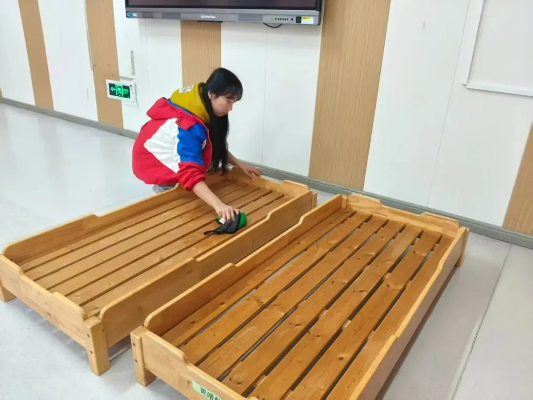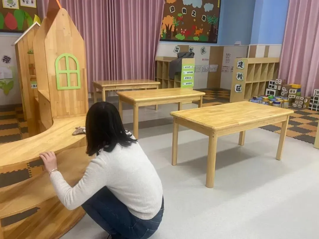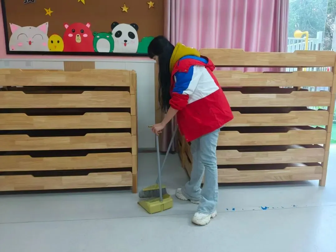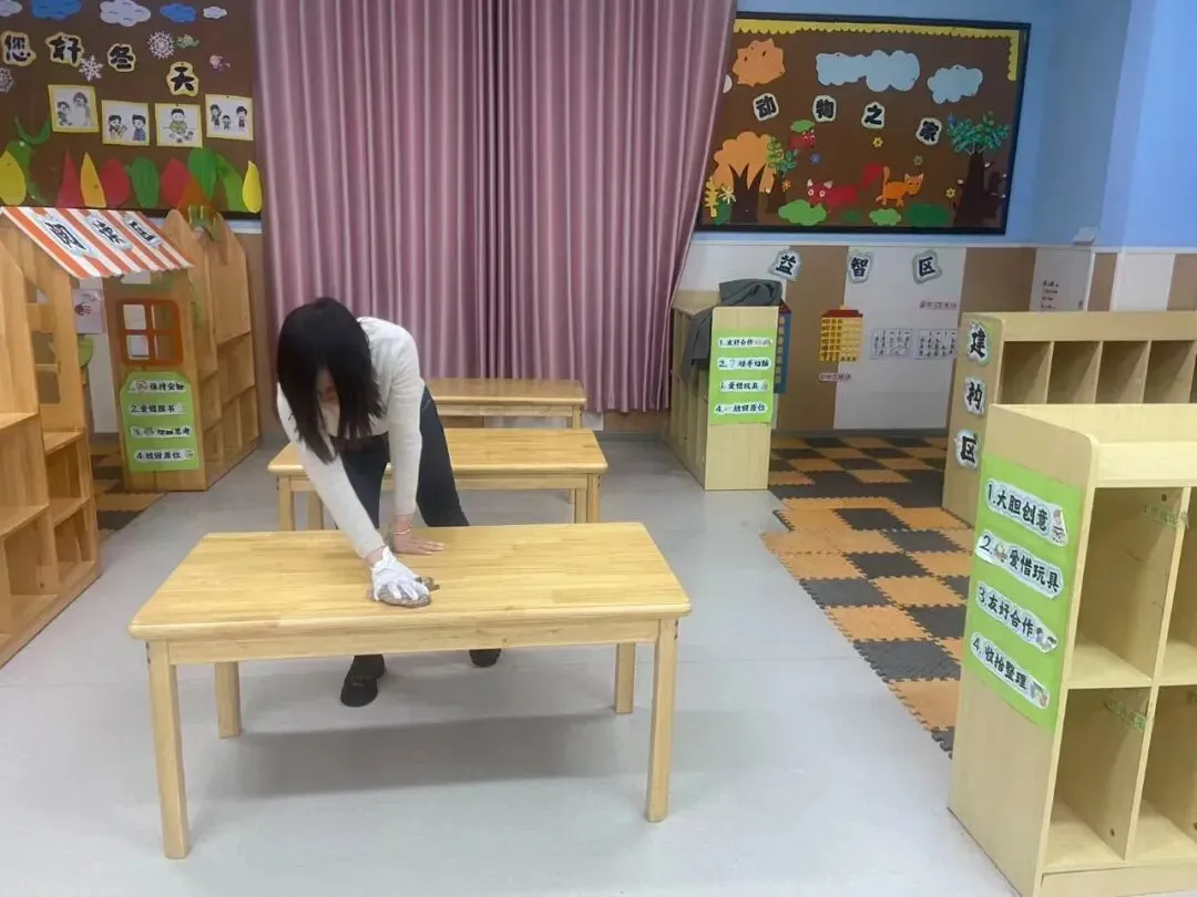 全体教师分工协作,对大、中、小班活动室、寝室、盥洗区等进行全方位清扫,细致擦拭门窗桌椅、清洗消毒玩教具、整理物品环境,做到无死角、无盲区,让班级环境整洁温馨、安全宜人。