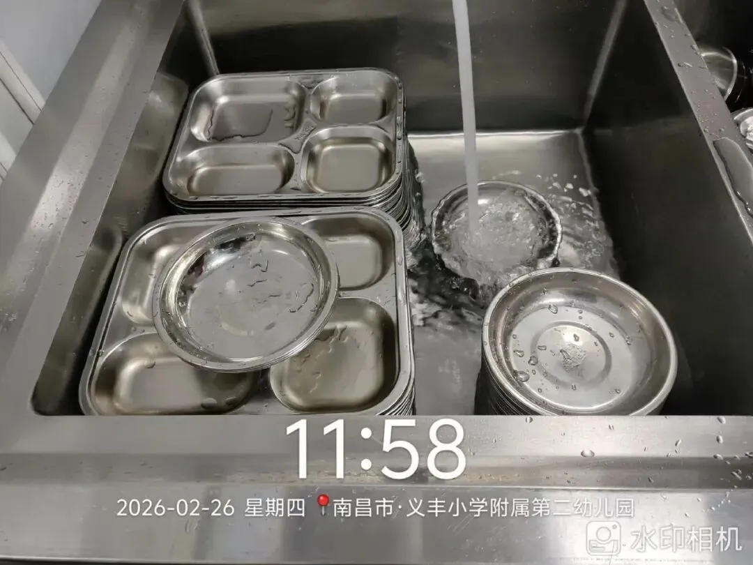 后勤与厨房人员严格落实食品安全规范,对厨房操作间、储物区、厨具餐具、地面墙面进行深度清洁与全面消毒,严把卫生关口,筑牢饮食安全防线,全力保障幼儿“舌尖上的安全”。