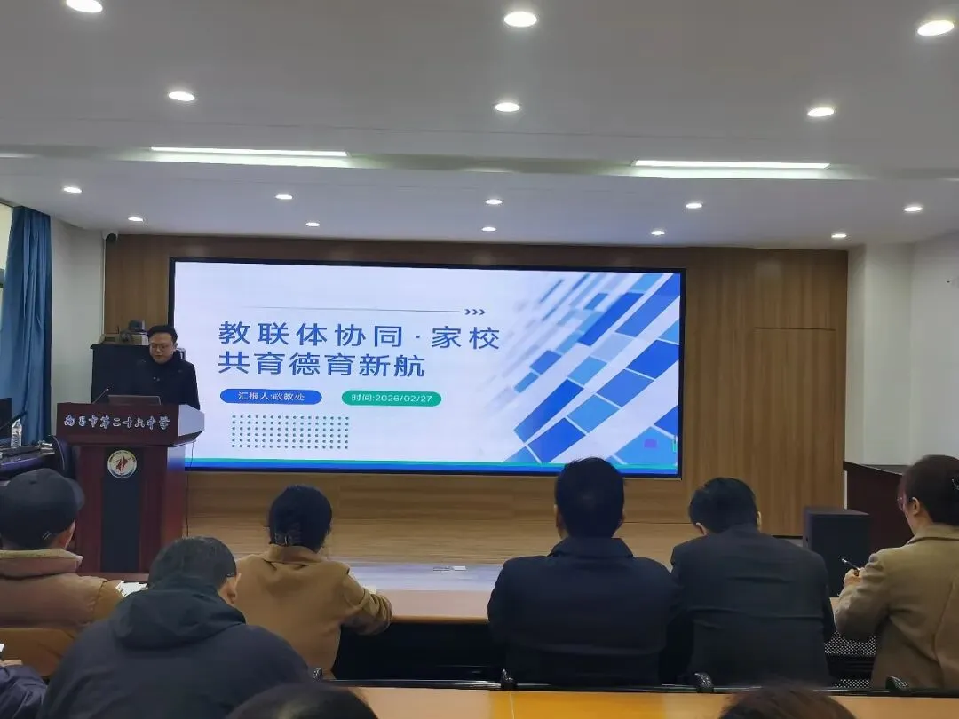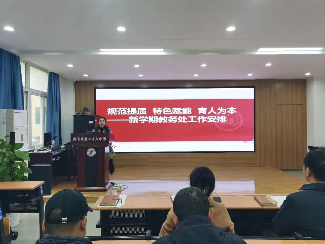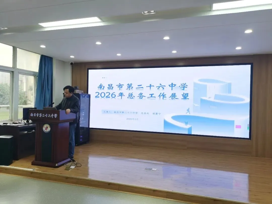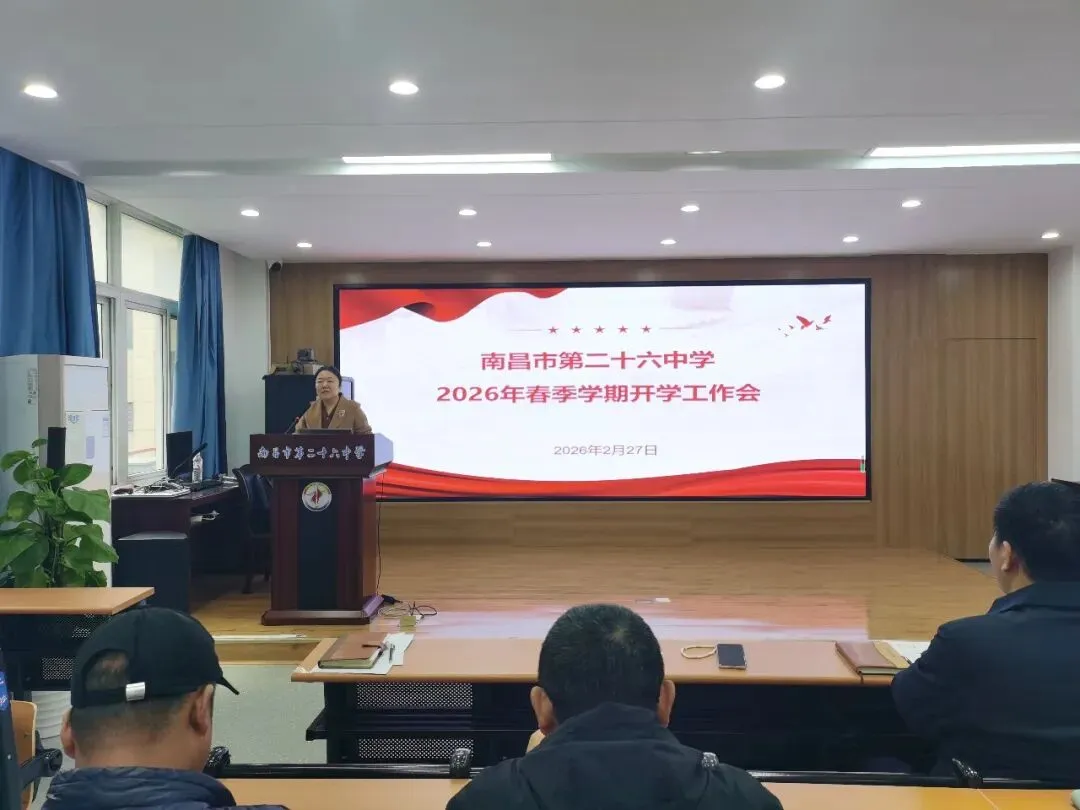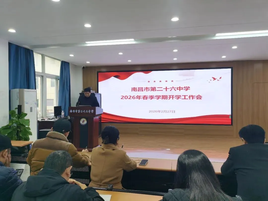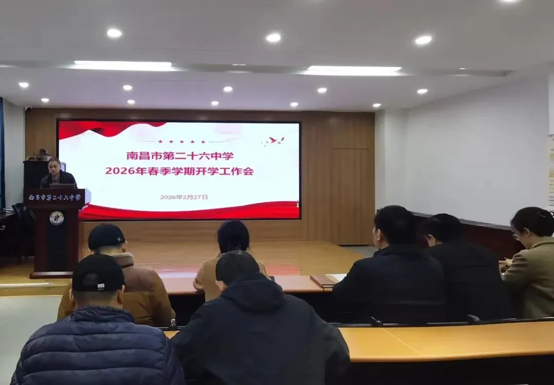 新岁序开,春潮涌动。2月27 日,南昌市第二十六中学召开2026 年春季学期开学工作会,全面统筹新学期发展蓝图,明晰目标任务,凝聚育人合力。学校领导班子与全体教工齐聚一堂、共商新篇。