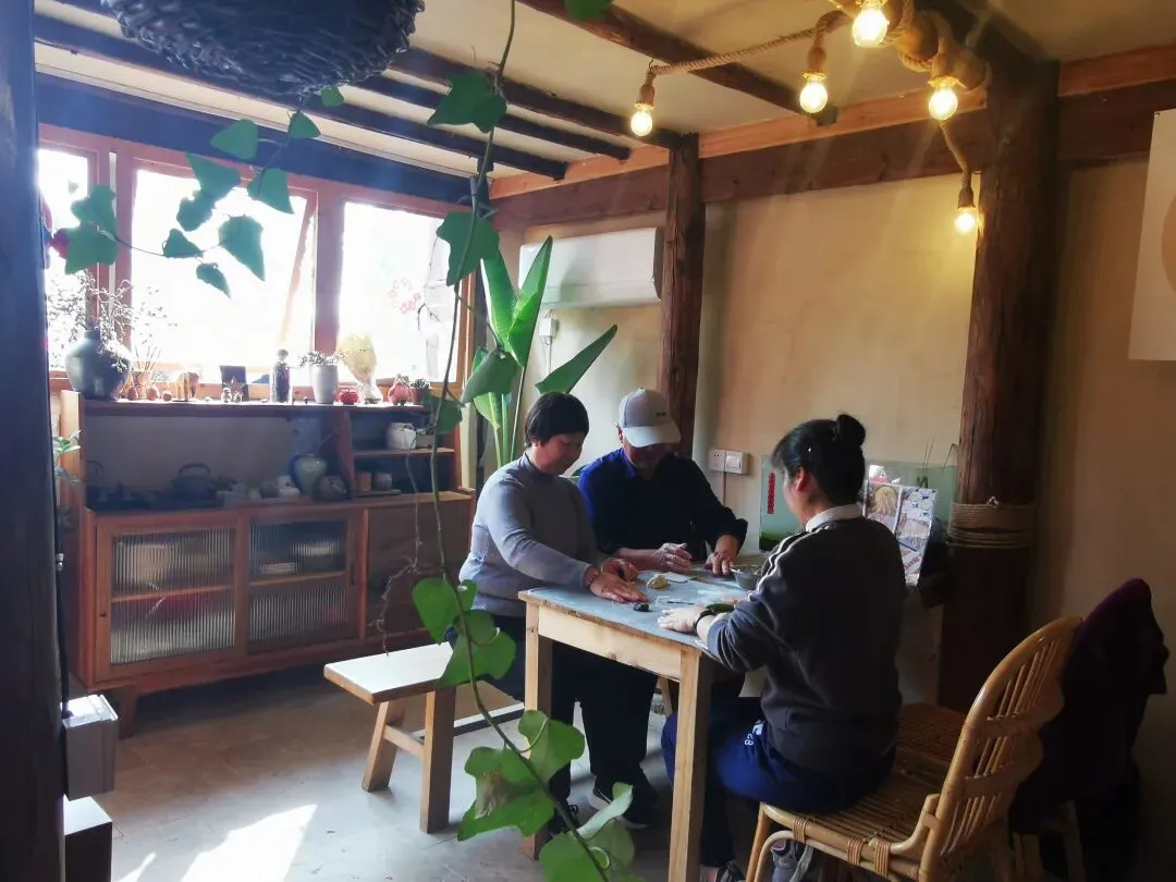 所以,不一定要在福气小站,不一定是豆豆窑烤面包店,随便找一家青砖黛瓦的老屋,里面都有旧木桌、手工挂毯,自带旧时光的味道,氛围感直接拉满。