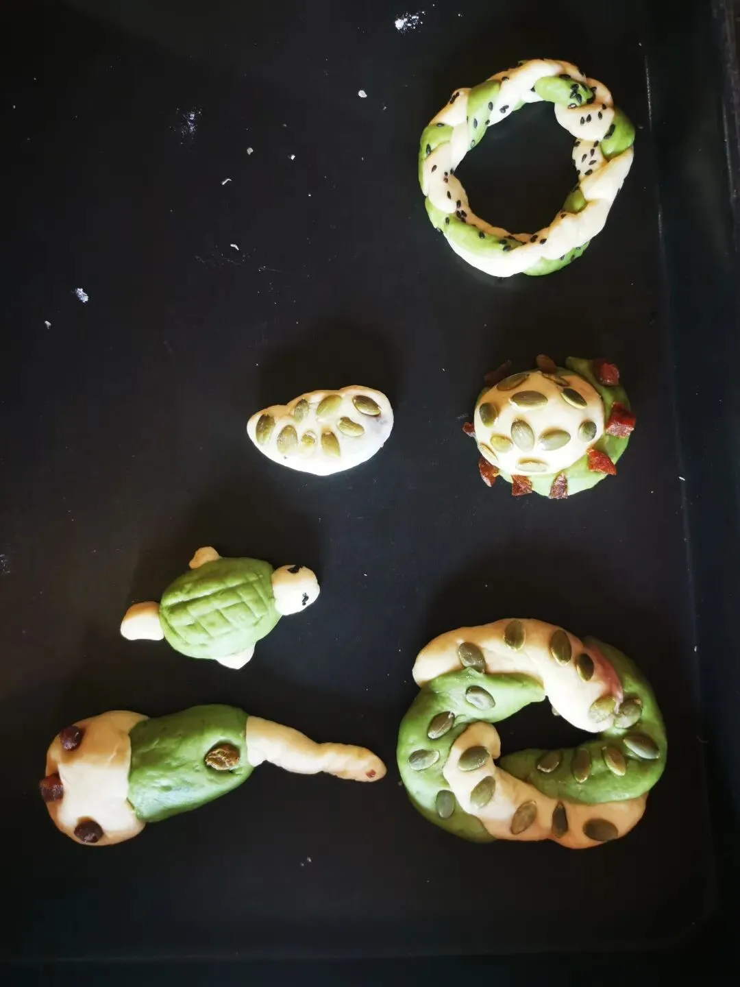 算了,她忙她的,我们无师自通地大干起来,又搓,又揉,又捏,还编了条麻花辫盘成圈,主打一个随心所欲,那感觉就跟玩橡皮泥似的。