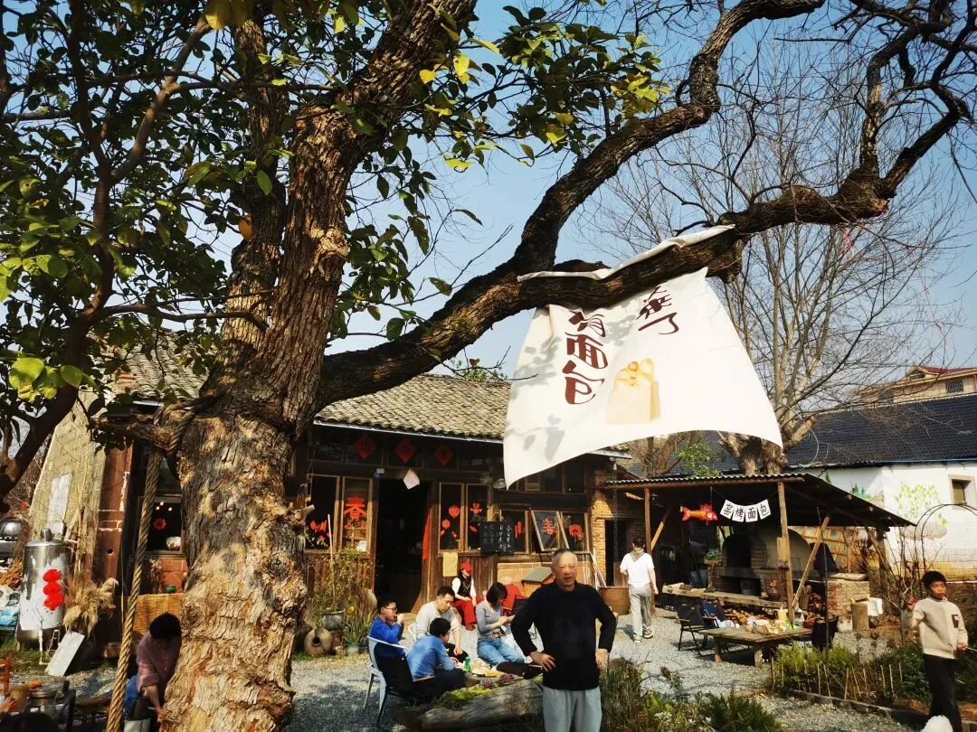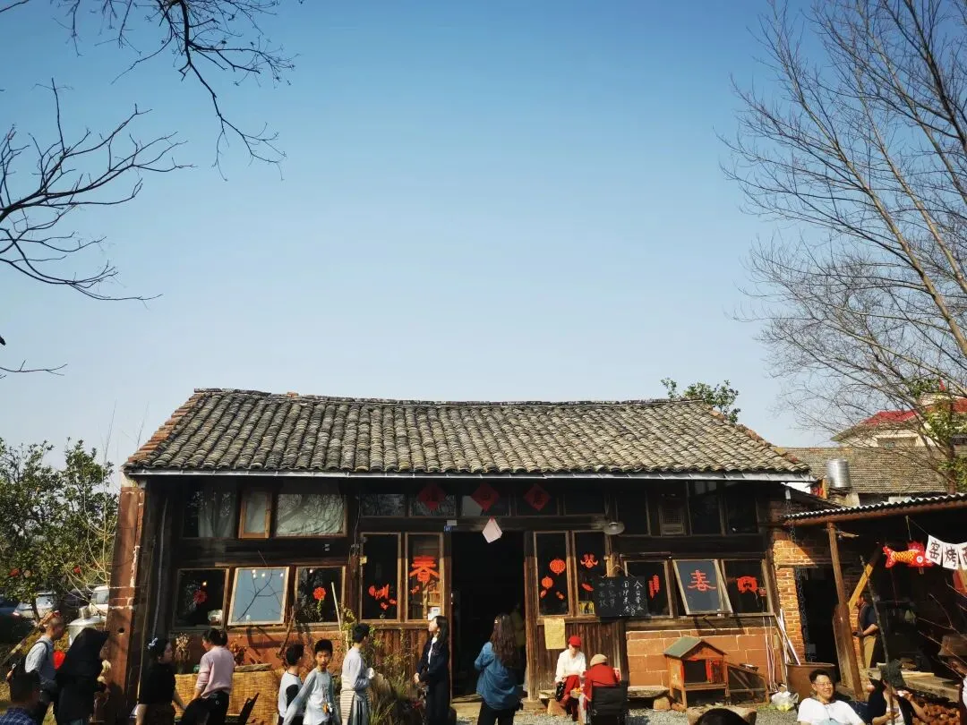 哈哈,我觉得吧,还是我和爸妈DIY的作品憨态可掬,更招人喜欢。店里除了面包,角落里还放了一架钢琴和一面非洲鼓,后面来了两个年轻人在那儿弹着玩。这就是烤面包的窑了,捏好的面包从放进去到可以吃,需要40分钟。旁边放了好些个用来烧窑的果木,侧边的墙根上也堆得满是。土窑里的果木烧得噼啪作响,麦香混着柴火香气飘满整个院子,这是幸福的味道啊~这就是豆豆窑烤面包店的院子了,是不是很适合发呆晒太阳~村里的特色小店还有很多,比如这个“清白居”,是一处老宅改造成的艺术空间。