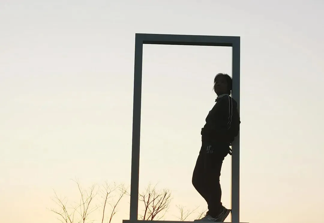 我在队友的指挥下,蹭蹭蹭的跑上去,在框里摆了个姿势。队友快门一按,一张具有几何感和故事感的剪影照片就此诞生了。