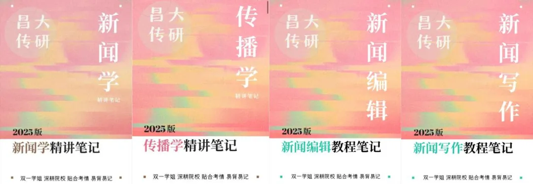 1、完成《传播学基础:历史、框架与外延》《新闻学概论》《新闻编辑》《新闻采访与写作》四本书一轮复习笔记,并整合相关书籍的知识拓展,从而帮助大家建立起兼具细节、广度与深度的知识体系。