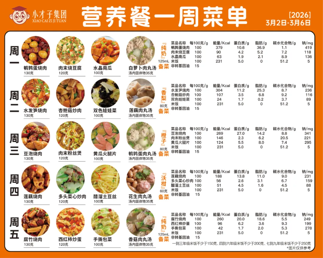 南昌市朝阳中学食堂周菜单(3月2日-3月7日)