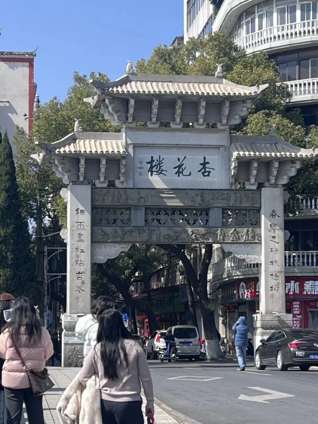 美术馆逛完出来,沿着小街走一小段路,就到了杏花楼,这是门口关于杏花楼介绍的石刻。所以“杏花楼”、“水观音亭”也是同一个地方的不同叫法