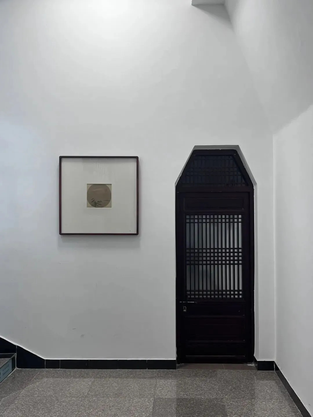 这是楼梯转角处的异形门和挂画,墙的边缘也是异形的,非常有意思的几何图案