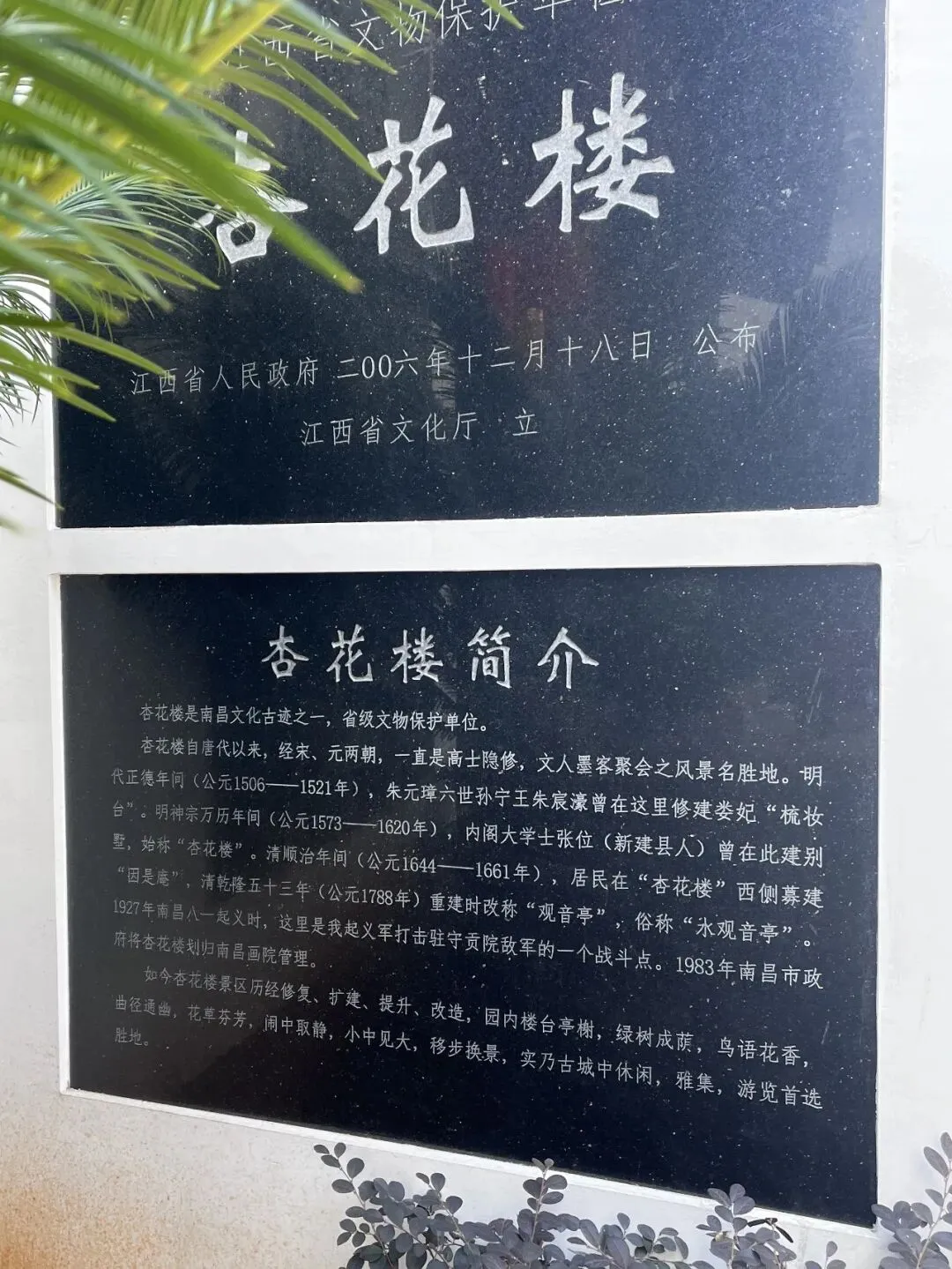 之前在网上查地图,以为杏花楼和南昌美术馆,这两个景点还是有点距离的,其实这两个景点就是挨在一块儿的。杏花楼是四面环水,是建在一个湖心岛上的园子,只靠一座桥通到外面。
