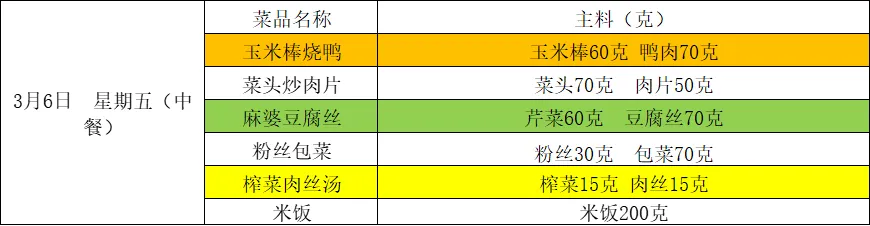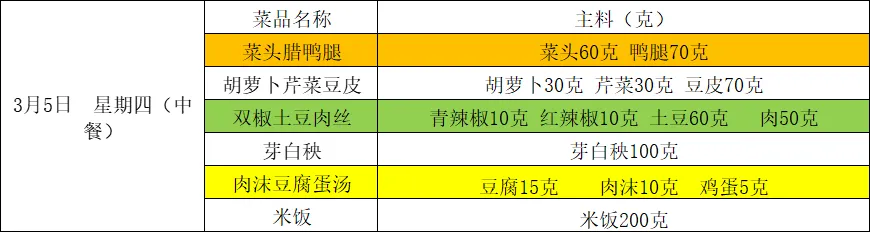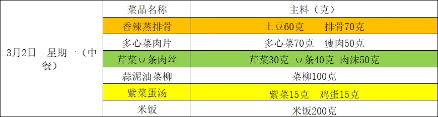 【阳光午餐】南昌二中高新校区一周食谱(3月2日-3月6日)