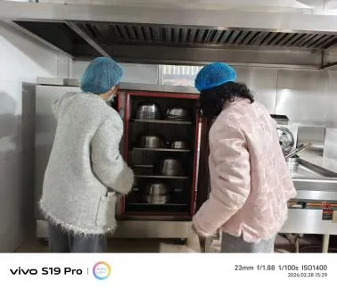 严把幼儿饮食安全关,食堂工作人员对餐具进行全方位彻底消毒;食材采购严格执行溯源制度,确保来源可查、品质可靠;每日全面清理厨房卫生,坚持生熟食品分开存放,规范烹饪操作流程,让孩子们吃得健康、吃得安心。