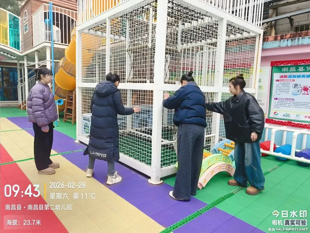 为全力保障新学期师幼安全与健康,筑牢坚实校园安全防线,南昌县第二幼教集团于开学前,全面开展2026年春季开学安全隐患全覆盖排查,以“零死角、零疏漏、零容忍”的严格标准,用心守护每一位幼儿快乐成长。