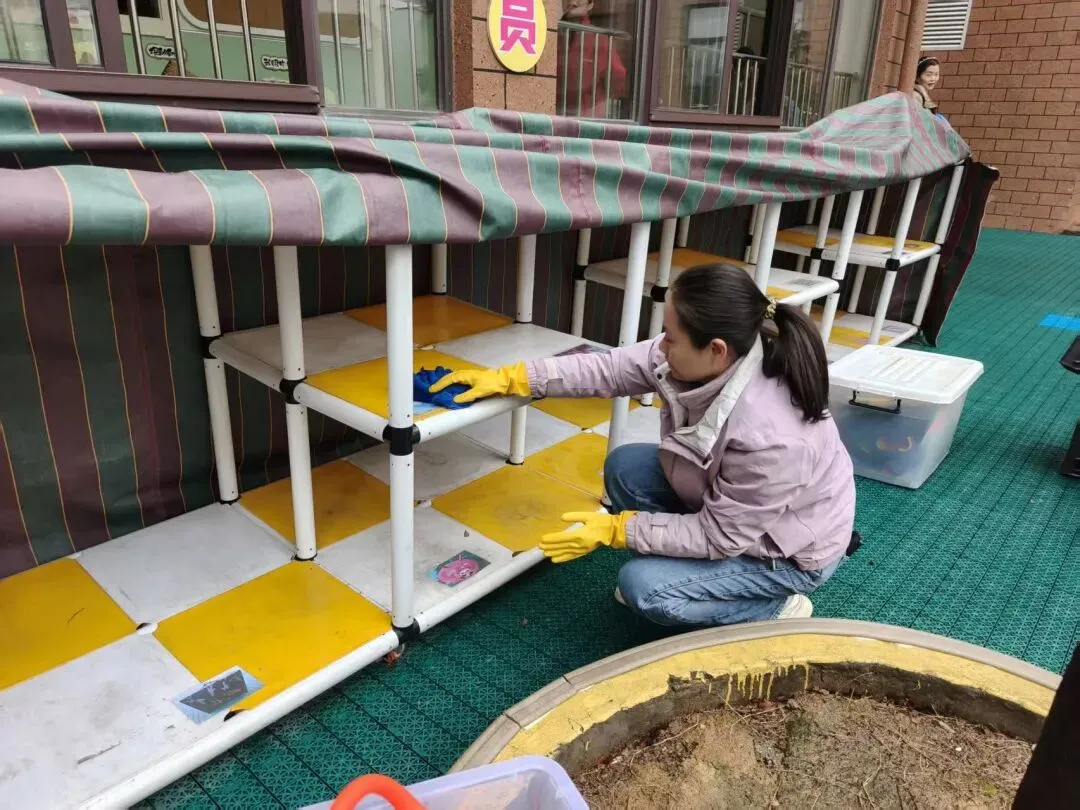 坚持常态化卫生防疫工作,对教室、寝室、卫生间及公共区域等进行全方位、无死角清洁消杀;足量储备消毒液、体温计等防疫物资,保障防疫需求。严格落实晨午检、因病缺勤追踪等健康管理制度,全方位守护幼儿身体健康。同时持续做好日常通风换气与环境保洁工作,从源头切断病媒生物传播途径,全力营造干净、整洁、安全、卫生的校园环境。