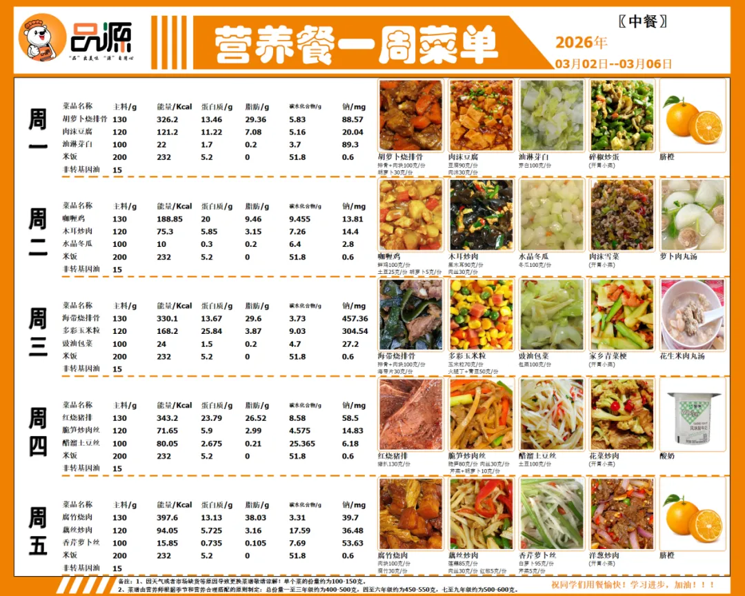 南昌县新城学校第1周菜谱及陪餐公示(3月2日~3月6日)