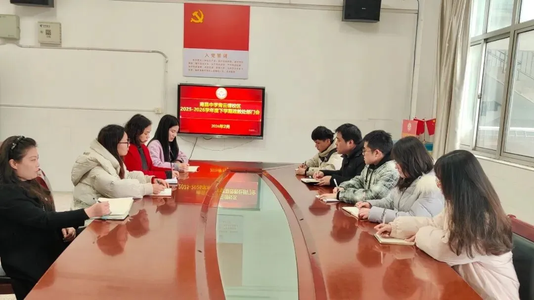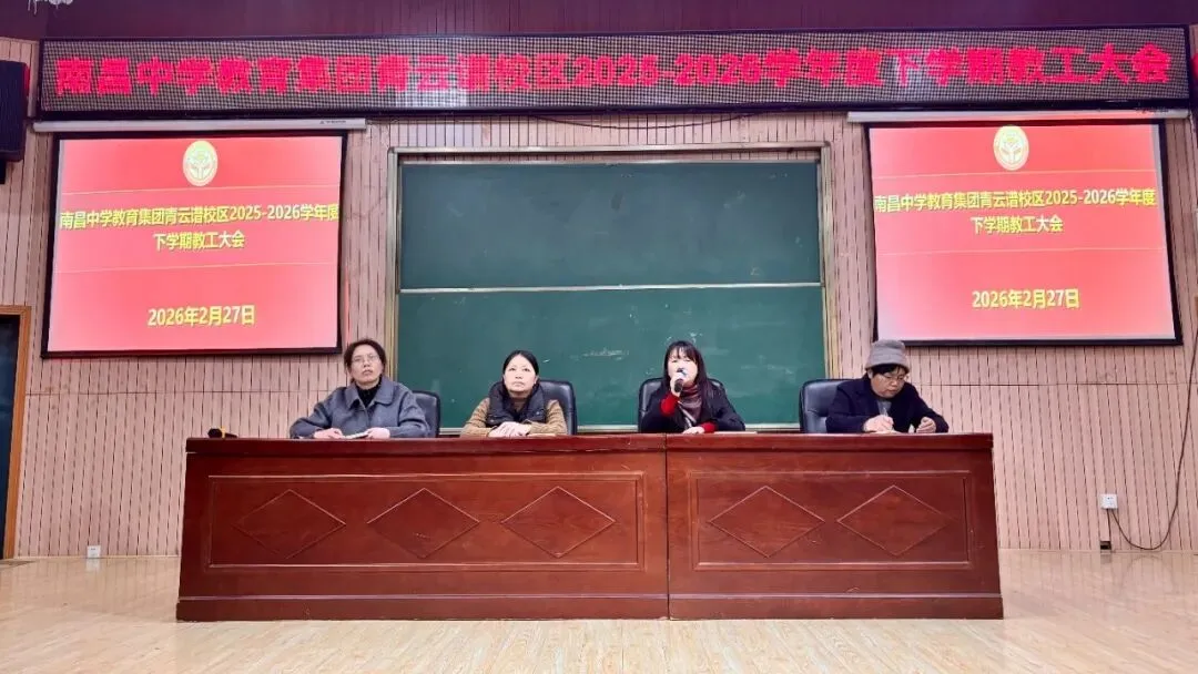东风浩荡千帆竞,万里征程再奋蹄。为切实做好2026年春季新学期开学安全稳定工作,确保新学期各项工作高效有序推进,2月26日至27日,南昌中学教育集团青云谱校区先后召开校级班子会、行政干部会、全体行政会、行政部门会、全体教师大会等会议,并开展校园安全大排查,全面部署新学期重点工作。