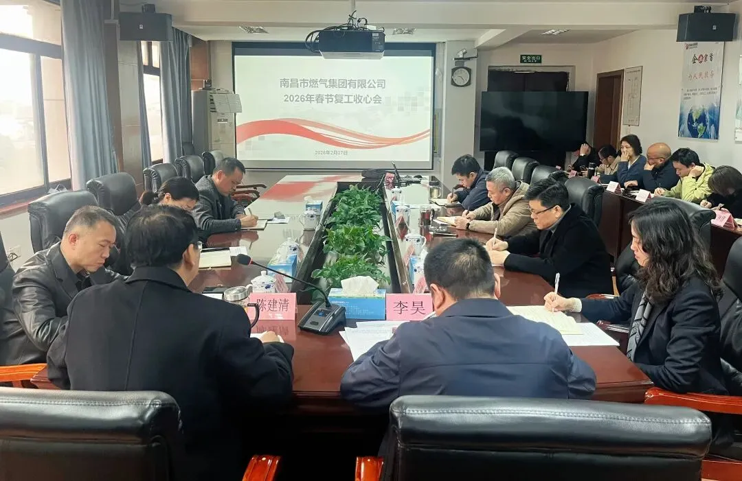 2月27日上午,南昌燃气集团组织召开2026年春节复工收心会。南昌燃气集团党委书记、董事长李昊,党委副书记、总经理陈建清出席会议,公司领导班子、总监、各部室及子公司主要负责人参会,会议由陈建清主持。