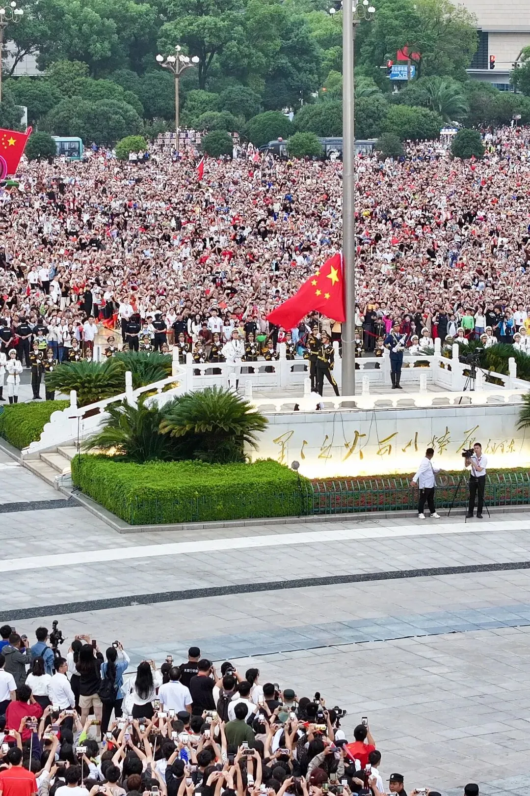 (2023年国庆节, 南昌八一广场举行升旗仪式,三军仪仗队升旗仪式仅在特定日期举办,图片来源@视觉中国)