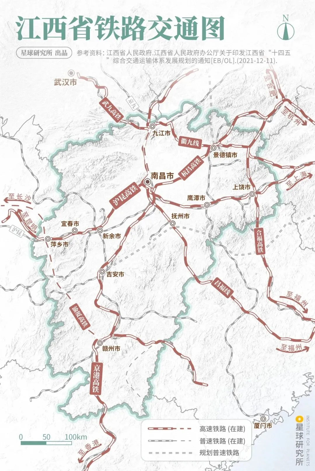 (江西省地形与水系示意,制图@俊/星球研究所)