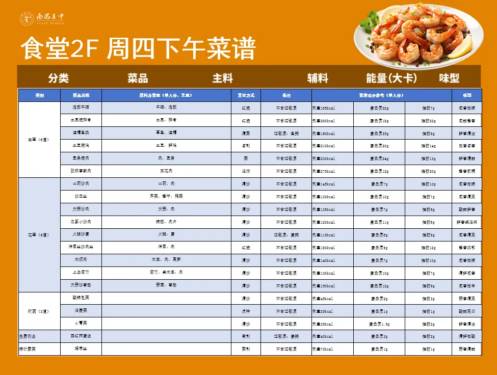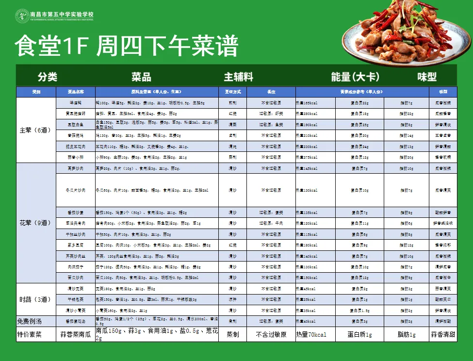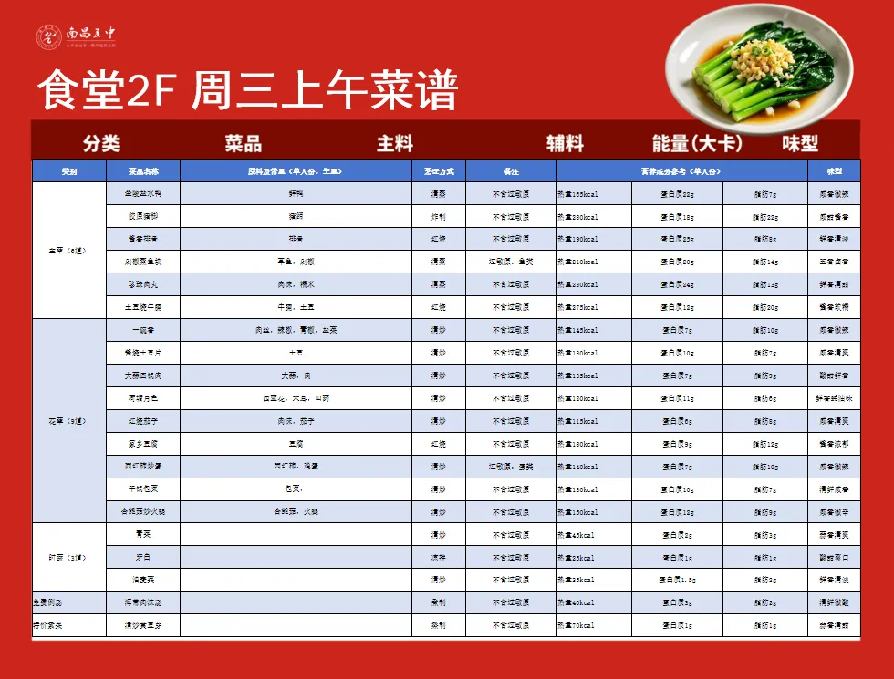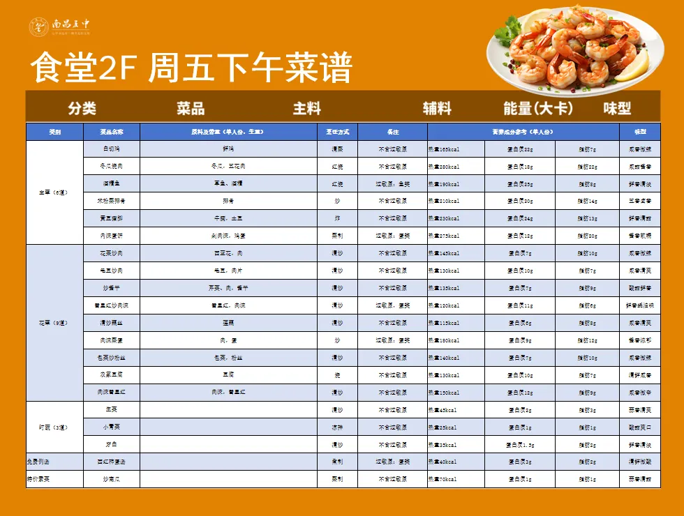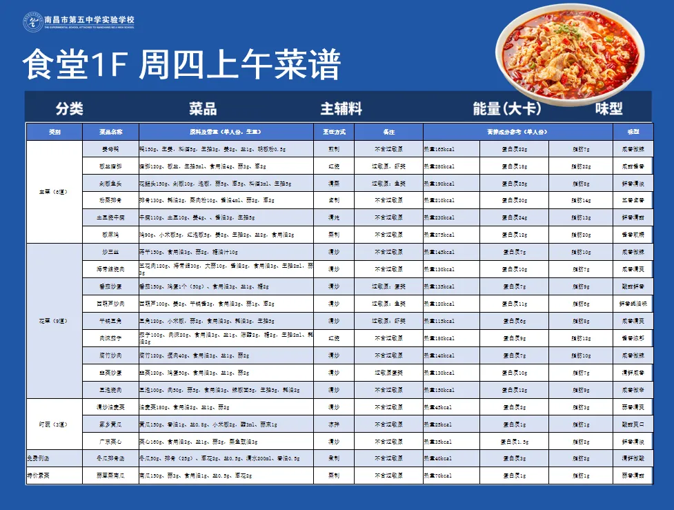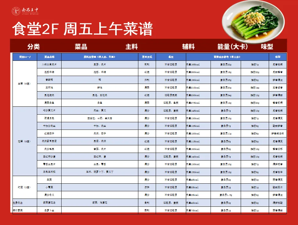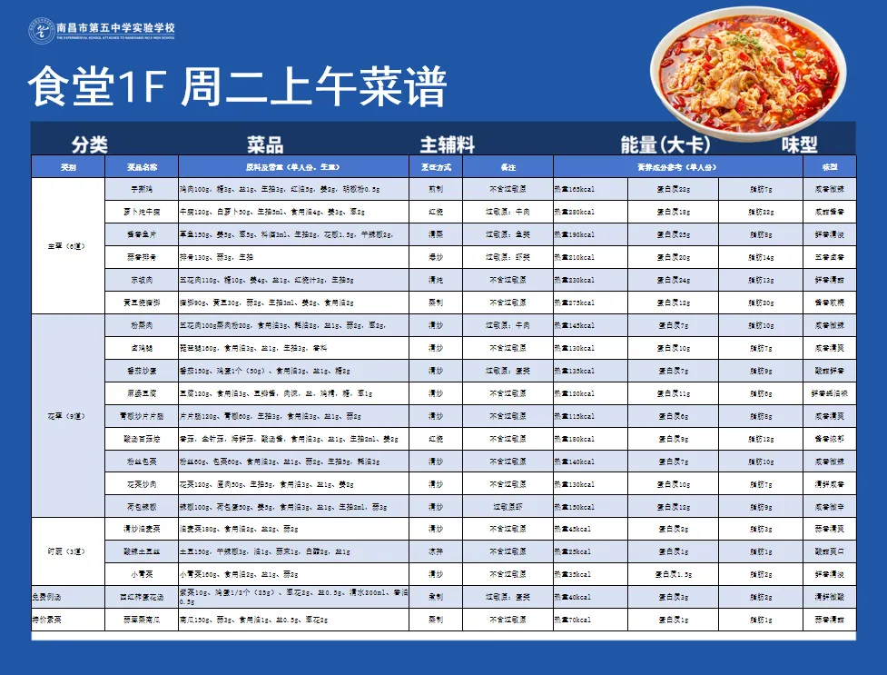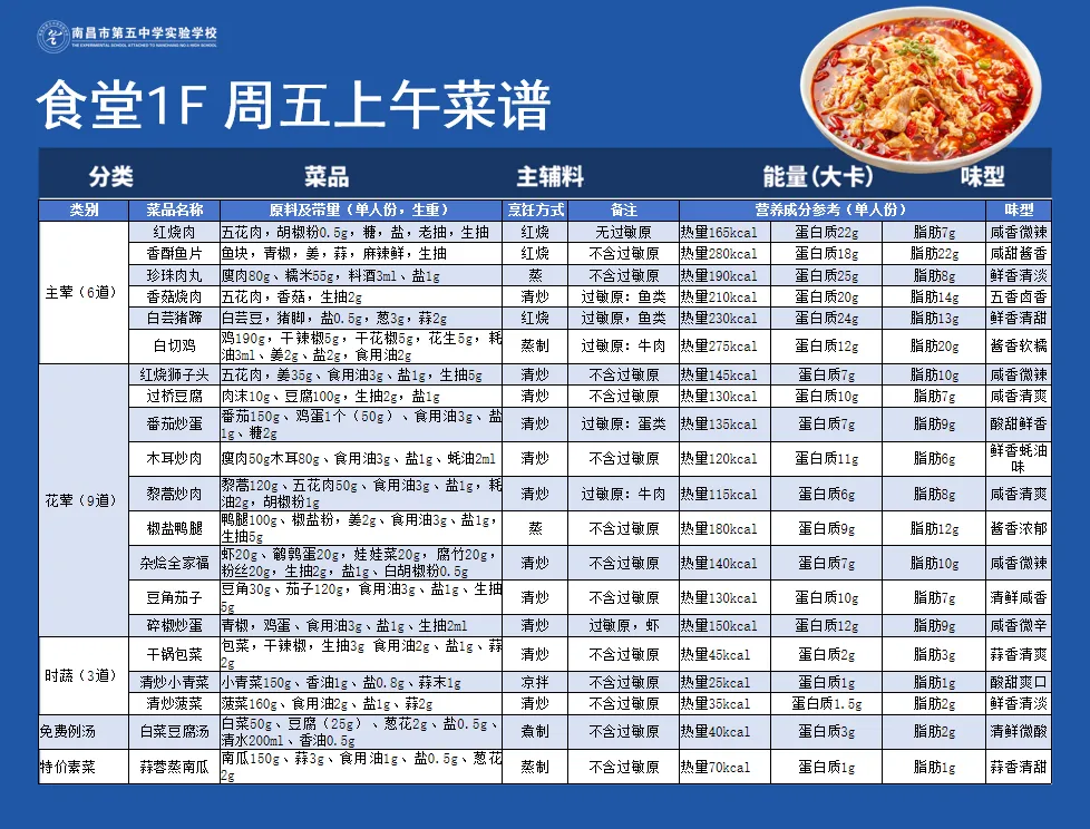 健康的饮食是学生成长的根基,日常的营养膳食是保证学生身心成长的关键基础。为提升师生膳食质量,守护师生“舌尖上的安全”,南昌五中后勤部门精心设计了兼顾营养与风味的美食菜单,多措并举,全方位保障师生享用的餐食安全、营养、美味。
