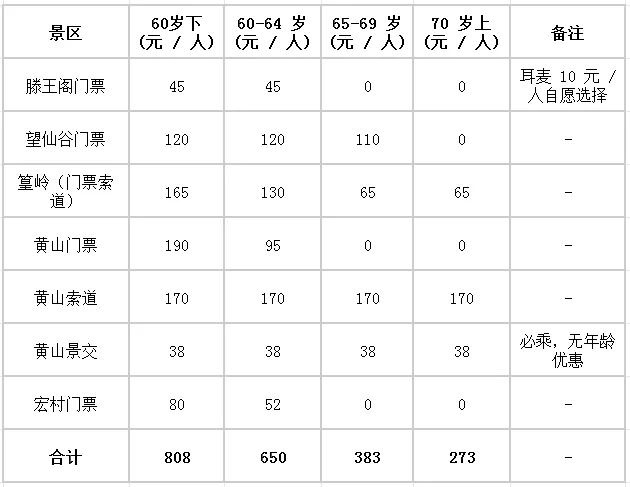 景区门票价格表(分年龄段)2026常规价,仅供参考,以官方为准。