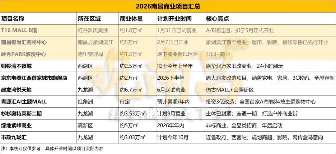 根据最新汇总的2026南昌商业清单显示,今年或