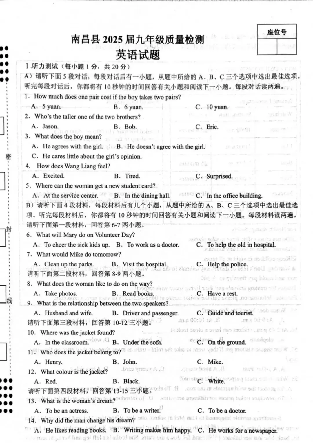 一、听力高频考点(背场景+关键词+易混点)