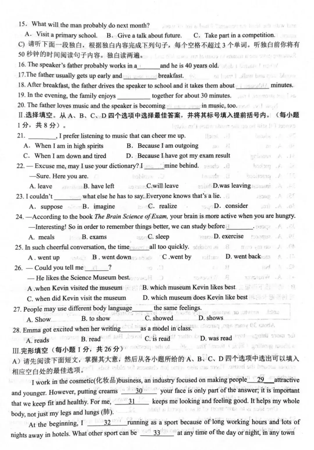 三、完形填空·必背高频词块与上下文逻辑