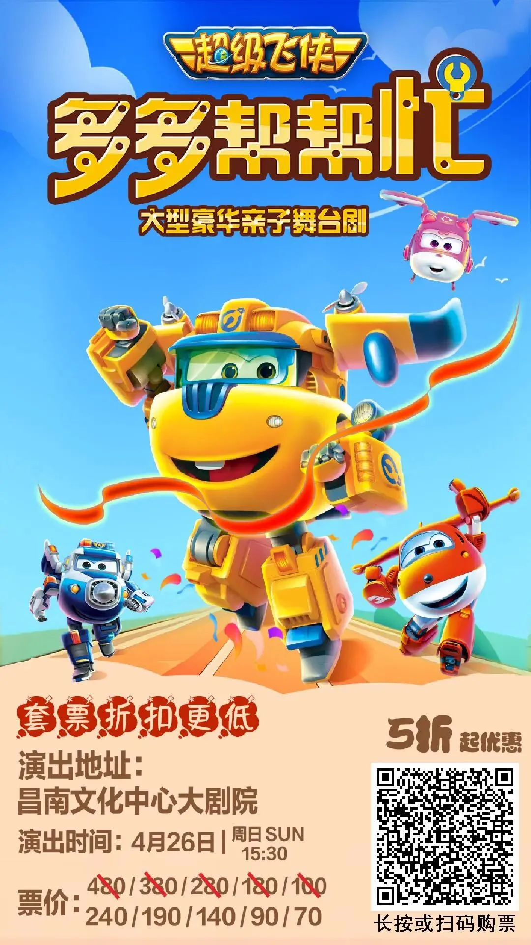 南昌|正版授权超级飞侠亲子剧《多多帮帮忙》4月26日昌南文化中心大剧院上演,早鸟票5折优惠中!