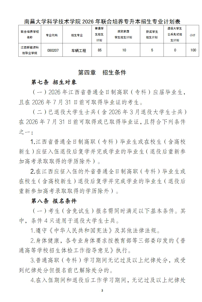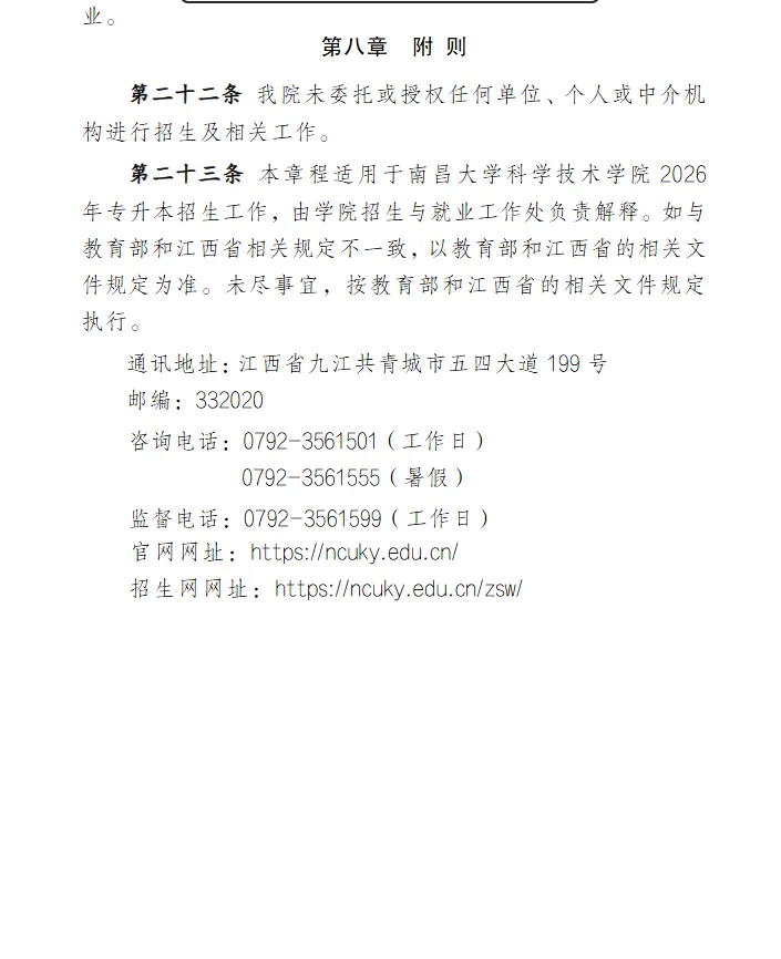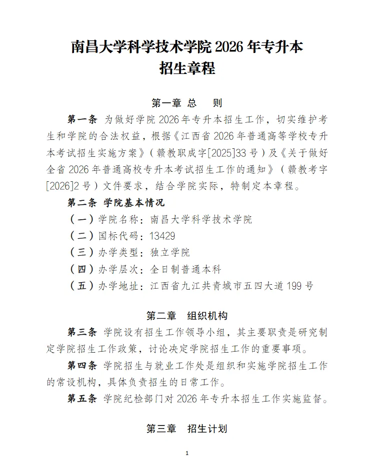 >【共招1472人】南昌大学科学技术学院2026年专升本招生章程