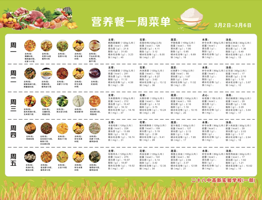 “食”刻守护,美好相伴——南昌二十八中高新实验学校营养菜谱(3月2日-3月6日)