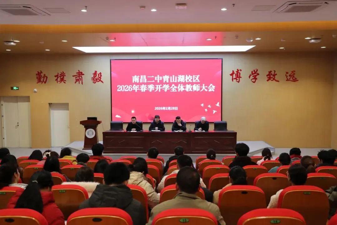 春启新程,万象更新;凝心聚力,共谱新篇。为切实做好2026年春季开学各项筹备工作,明确新学期工作目标与发展方向,统筹推进学校各项工作高质量开展,南昌二中青山湖校区召开2026年春季开学全体教师大会。全体教职工参会,会议全面部署新学期重点工作,为新学期学校发展谋篇布局、凝心鼓劲。